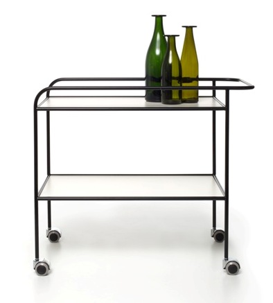 Cappellini propone anche Steel Pipe disegnato nel 1968 dall’artista designer Shiro Kuramata, un carrello semplice e funzionale con struttura verniciata a polvere nero opaco, ripiano in laminato bianco, carter cromato e ruote in plastica grigia.