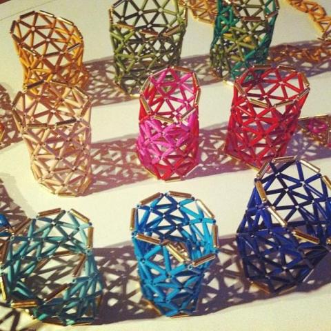 Durante le giornate del Salone del Mobile di Milano (8/13 aprile), nello showroom De Padova sarà esposta la collezione di gioielli “Jewellery for the curious” dell’architetto greco Bela Louloudaki. Un po’ come nel gioco del Lego, tutti i pezzi della collezione hanno origine da un unico elemento che viene assemblato in diverse configurazioni geometriche e cromatiche: un tubettino di ceramica. Ognuno è rivestito da uno strato di colore oppure è immerso nell’oro, dopo un preventivo bagno di rame e argento. Tutti le fasi della lavorazione sono artigianali, quindi ogni pezzo risulta leggermente diverso dagli altri.