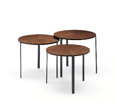 Fanno invece parte delle collezioni indoor Starsky e Anin di David Lopez Quincoces: il primo è un tavolino composto da tre piani impilabili di pari diametro ma di altezze diverse da accostare in varie composizioni; il secondo è uno sgabello con base a X in alluminio e seduta con cuscino sottile.